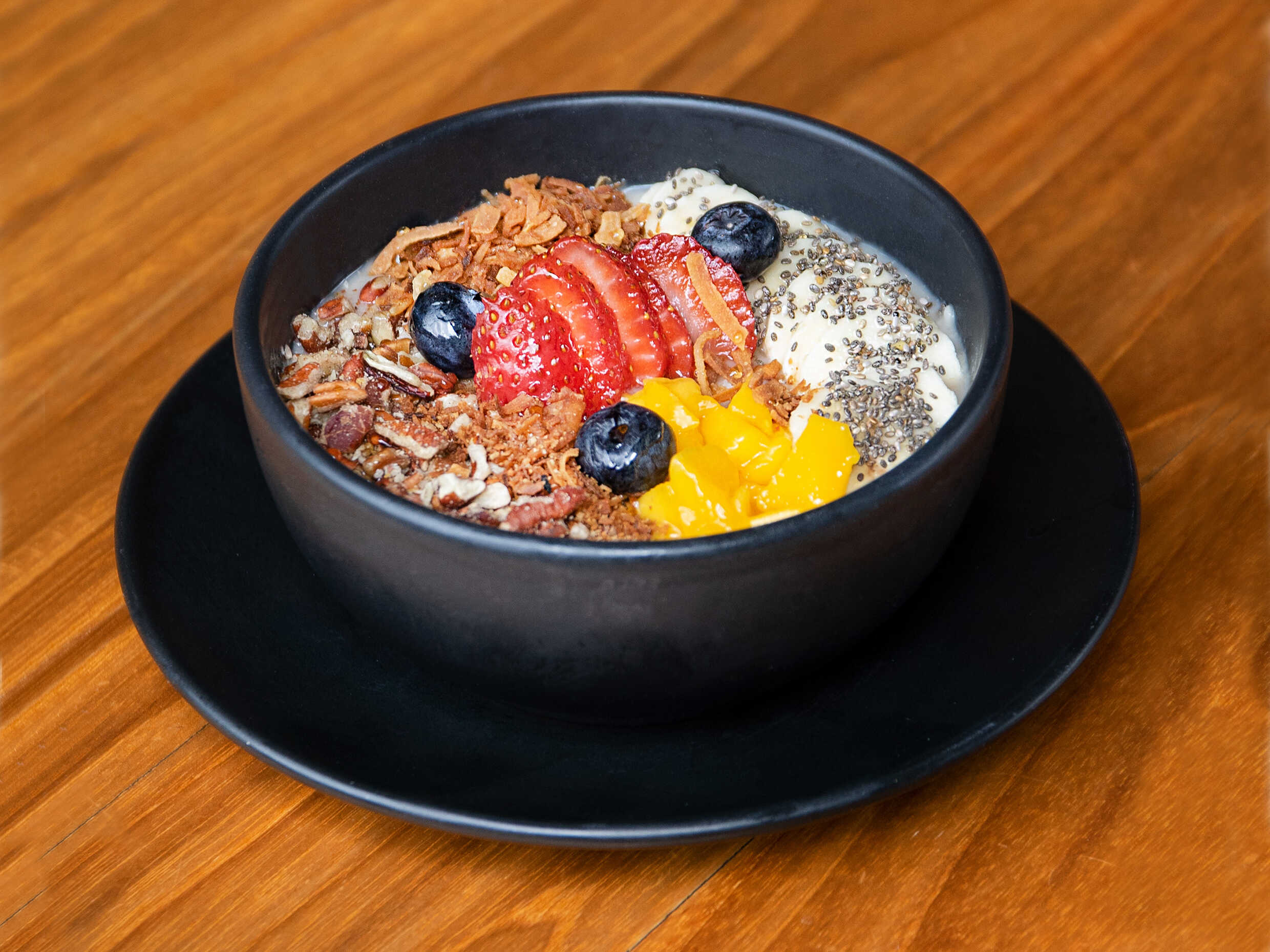 Avena endulzada con canela, vainilla y leche de almendra, acompañada de arándanos, nuez, plátano, berries y mango fresco (sujeto a temporada), con un toque final de miel natural. Consiéntete sin culpa desde el desayuno.