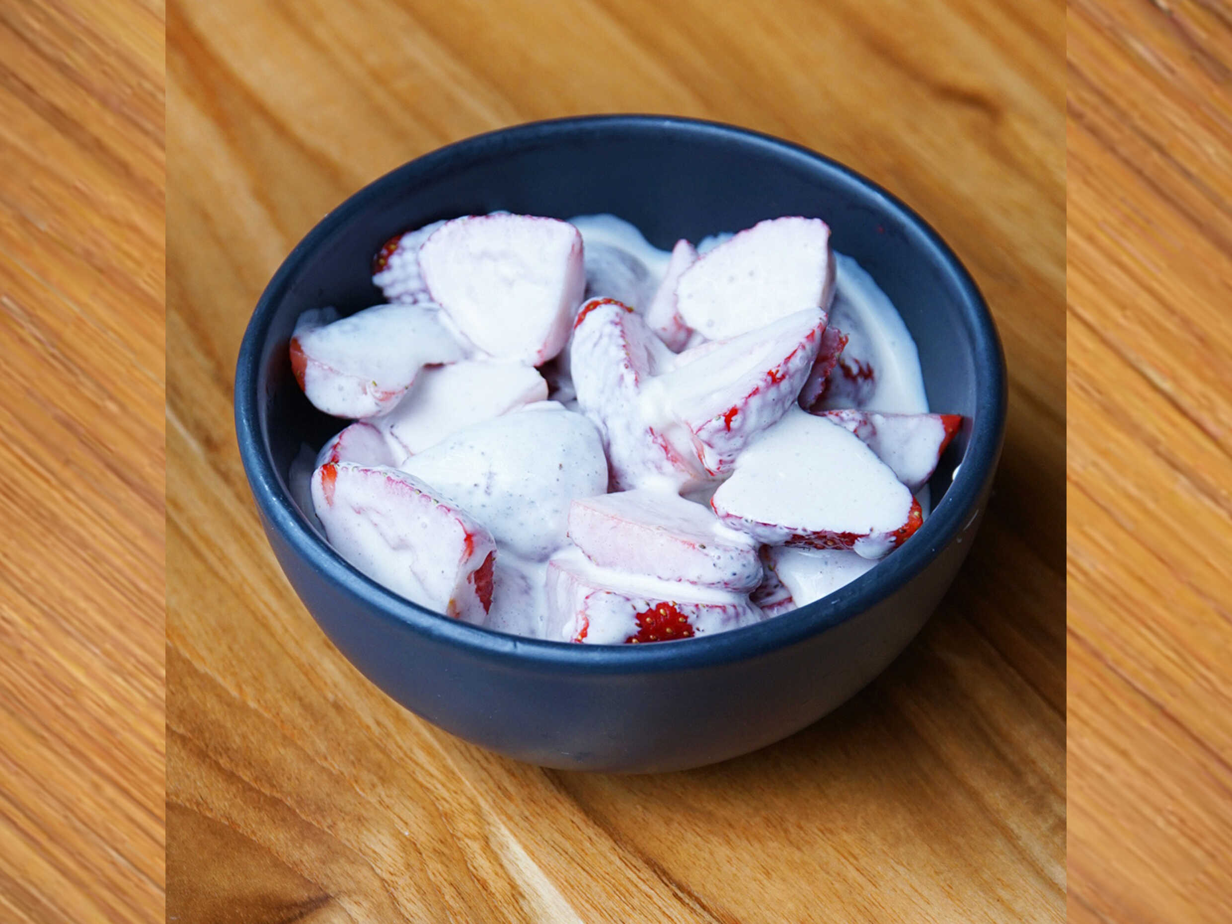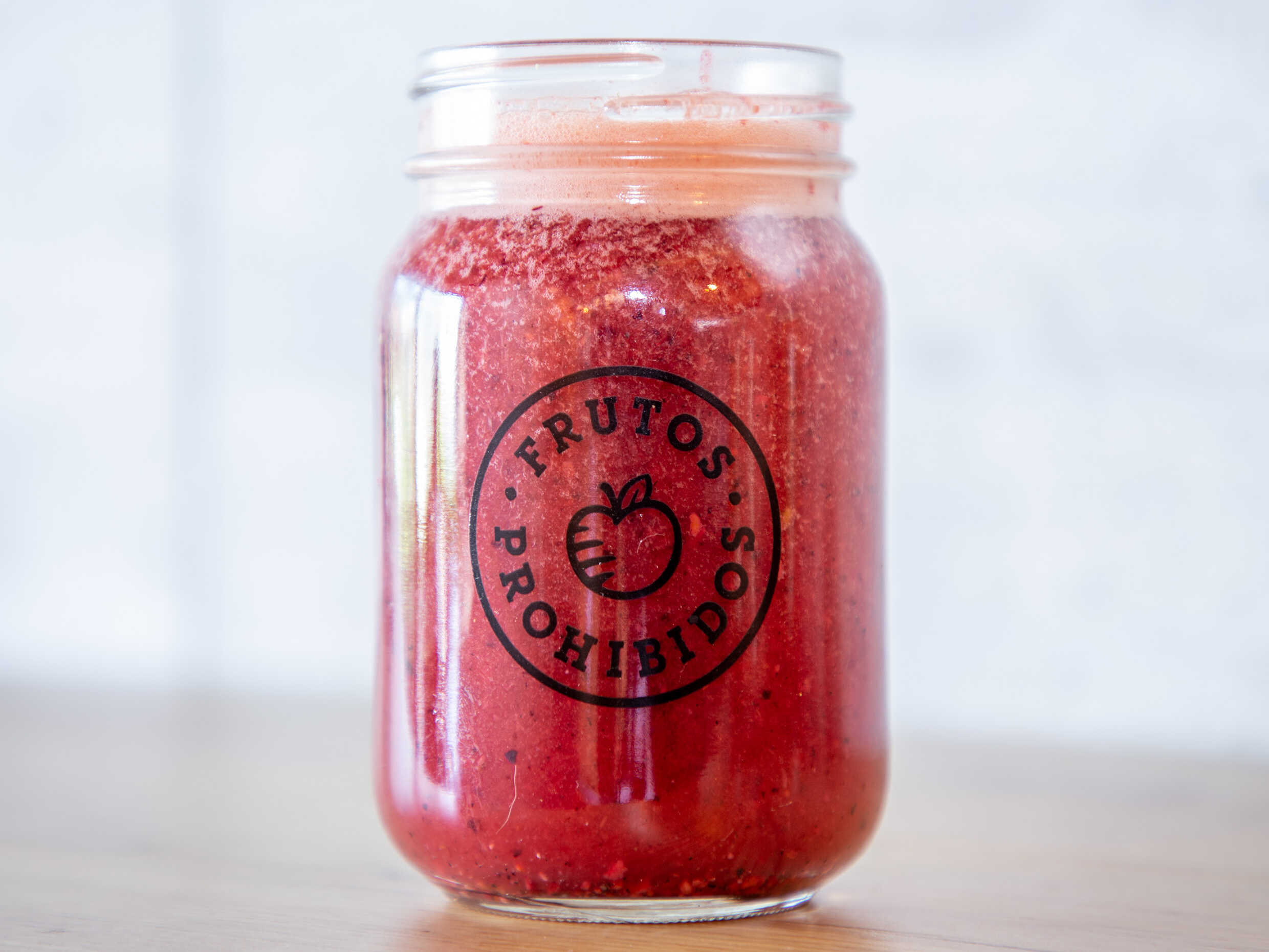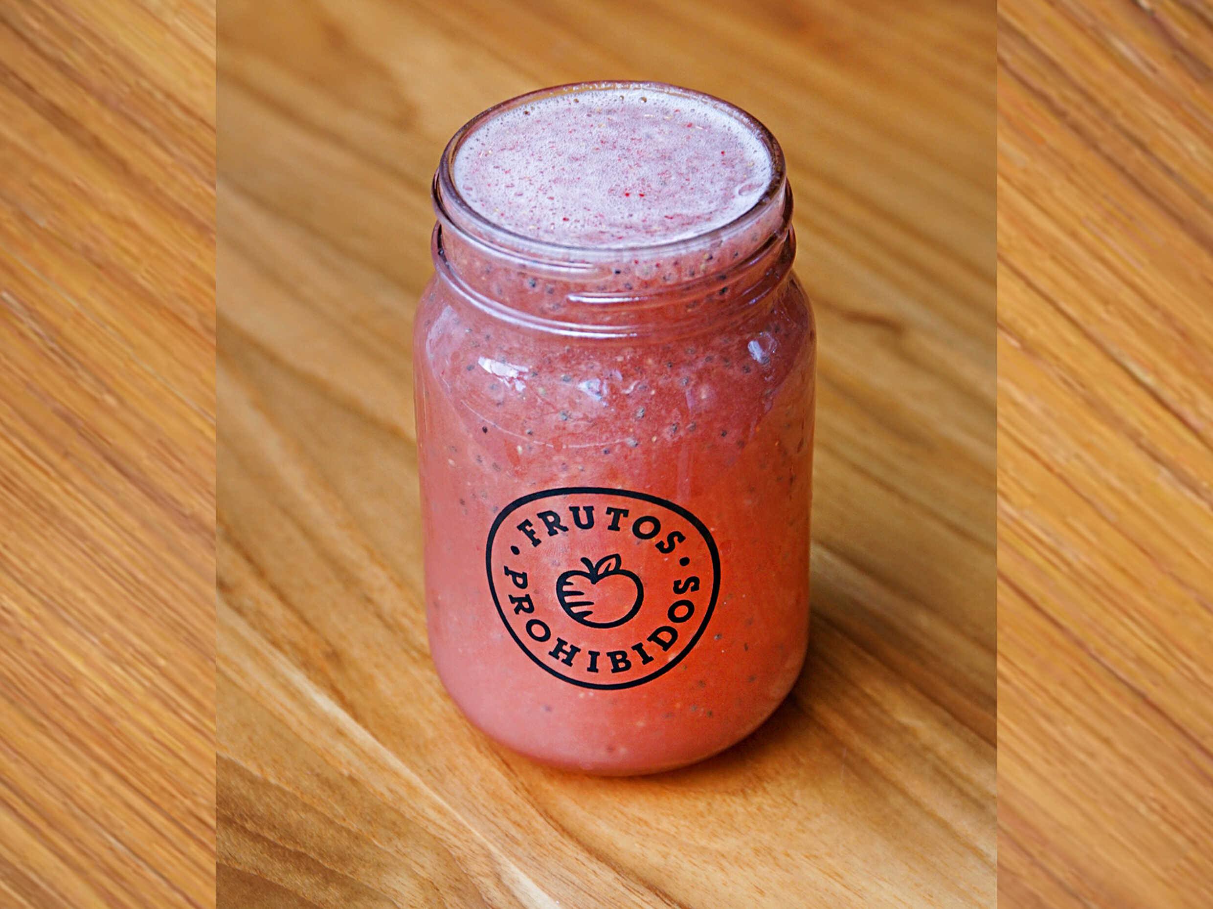 Mezcla de frutos rojos, plátano, leche de coco y un toque de vainilla.