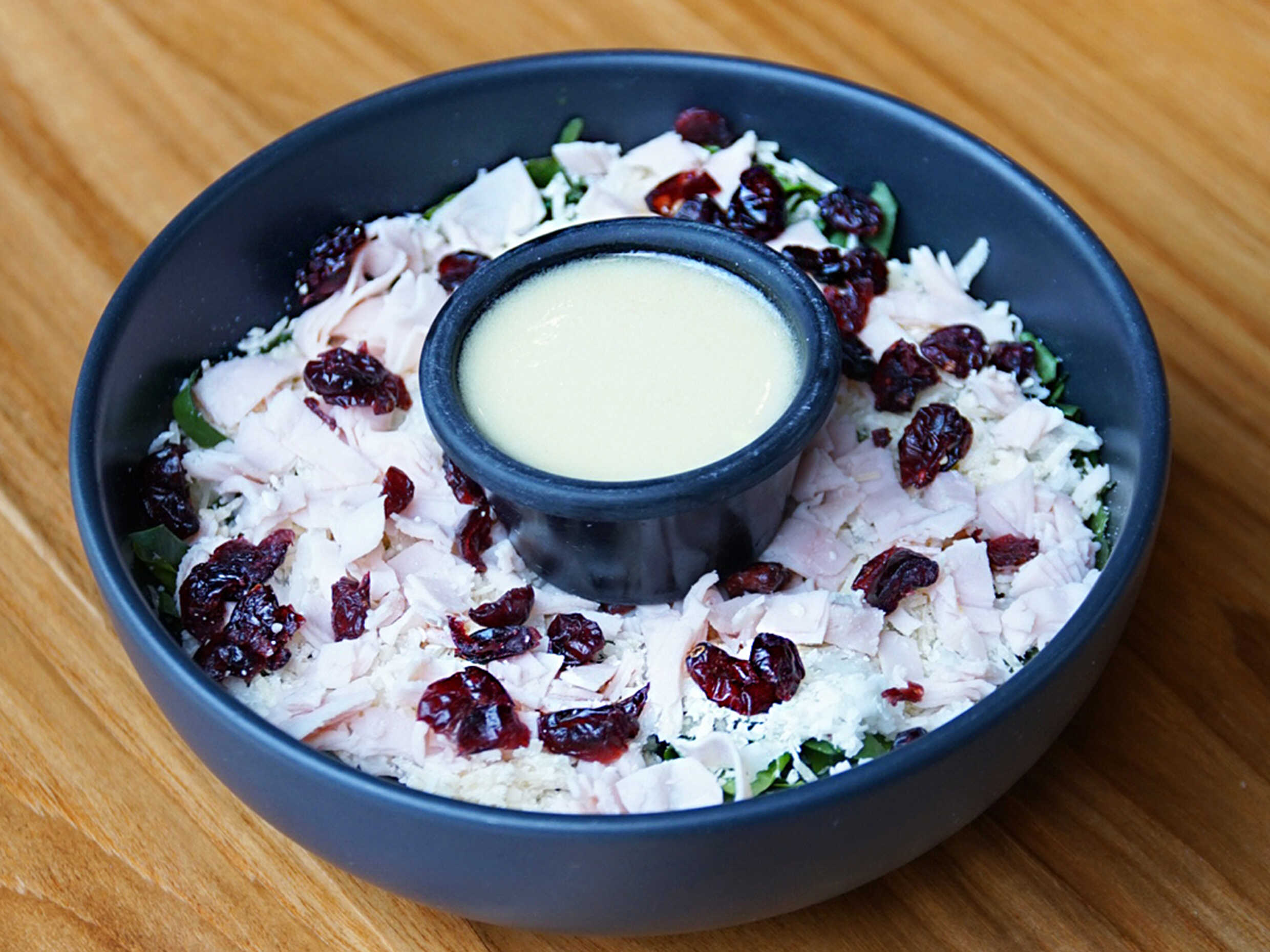 Parmesano, jícama, espinaca, pechuga de pavo, arándanos.