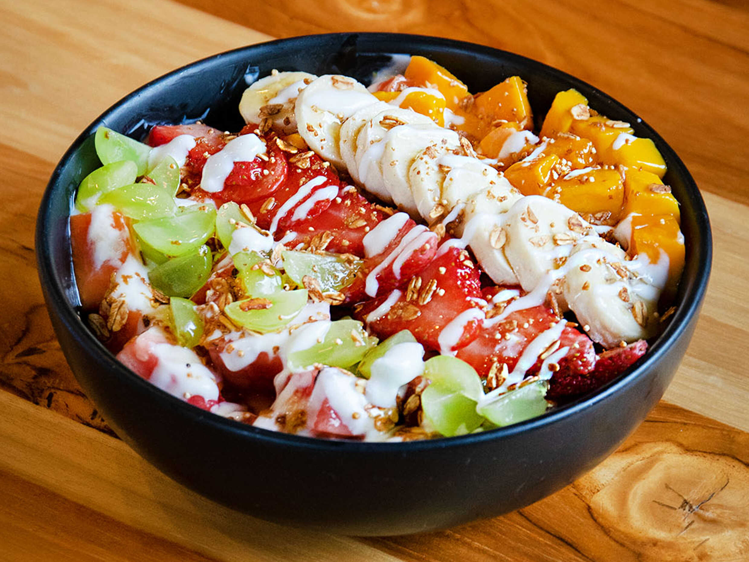 Melón, sandía, papaya, mango (en temporada), plátano, fresa, uva.