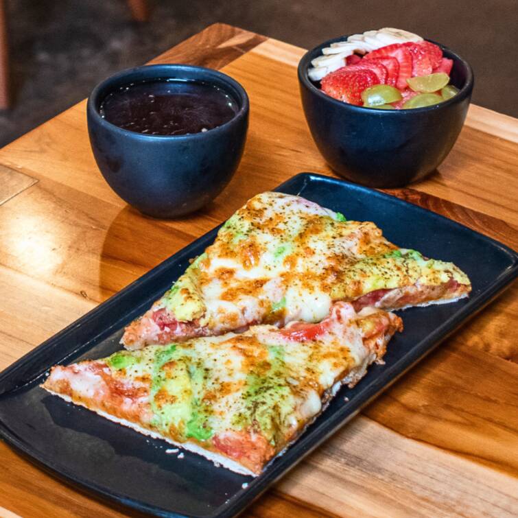 Dos piezas de baguette crujiente con frijoles refritos, aguacate en láminas, jitomate fresco y queso manchego gratinado. Un clásico reconfortante con el toque saludable de la casa.