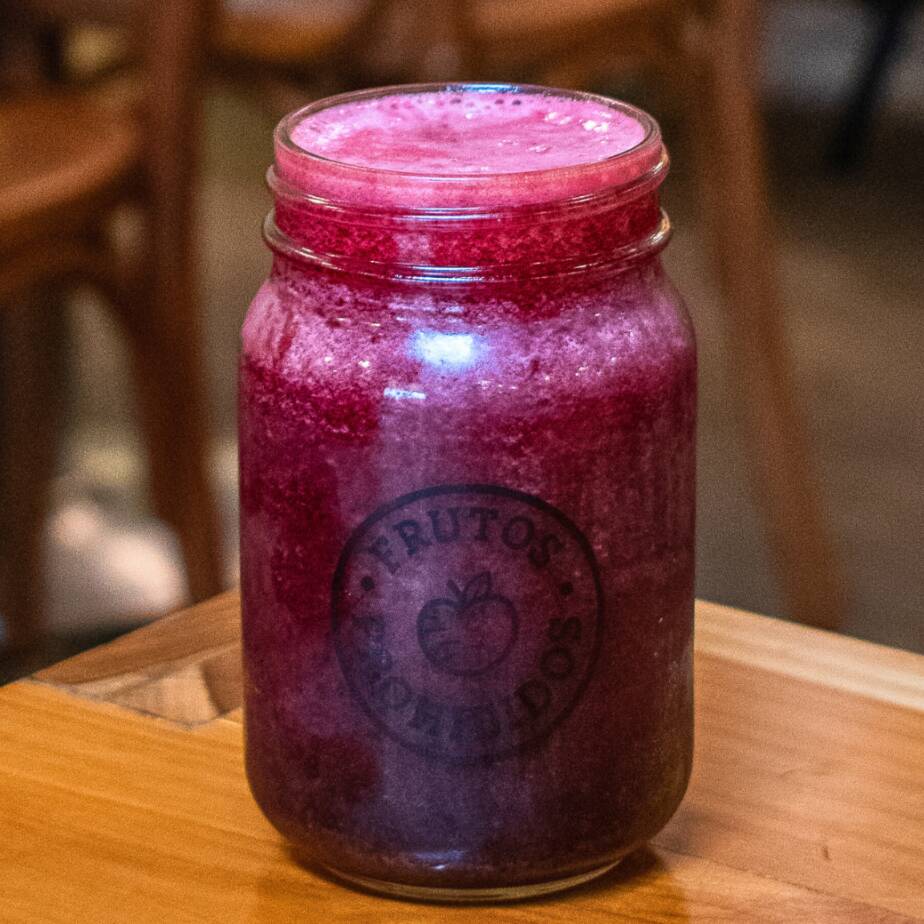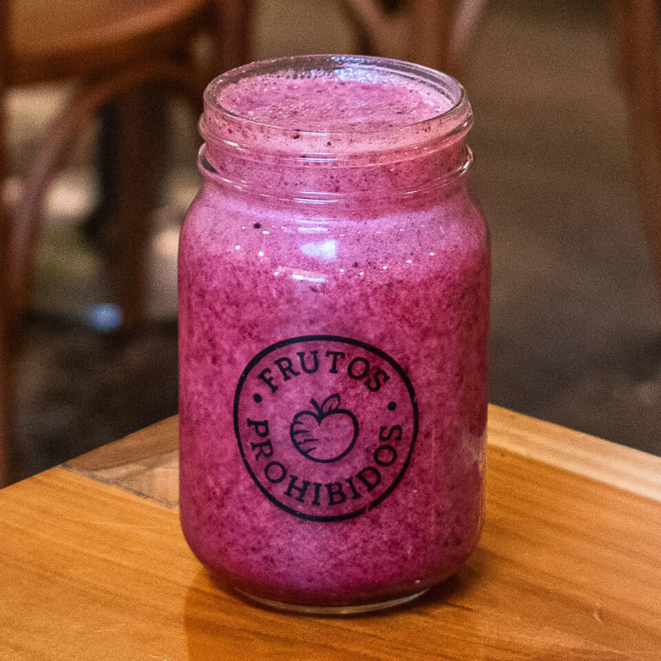 Mezcla de frutos rojos, plátano, leche de coco y un toque de vainilla.