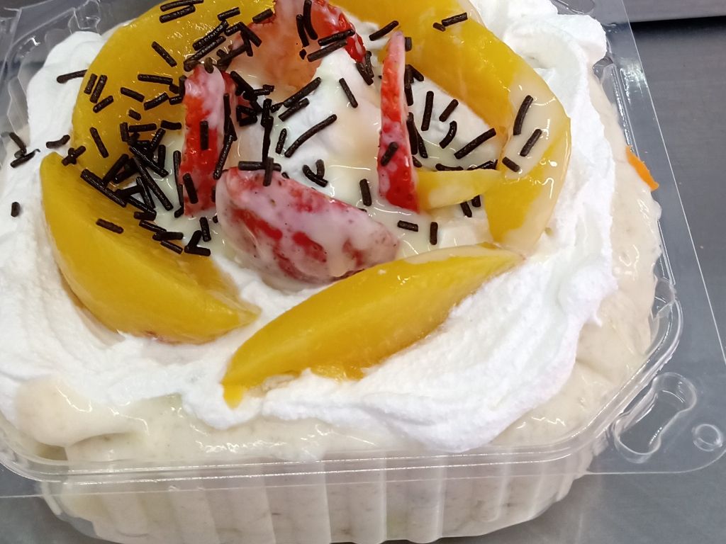 Duraznos en almíbar crema Alpura vainilla canela azúcar pasas nuez lechera chipas de chocolate Chantilly adornado con durazno y fresas