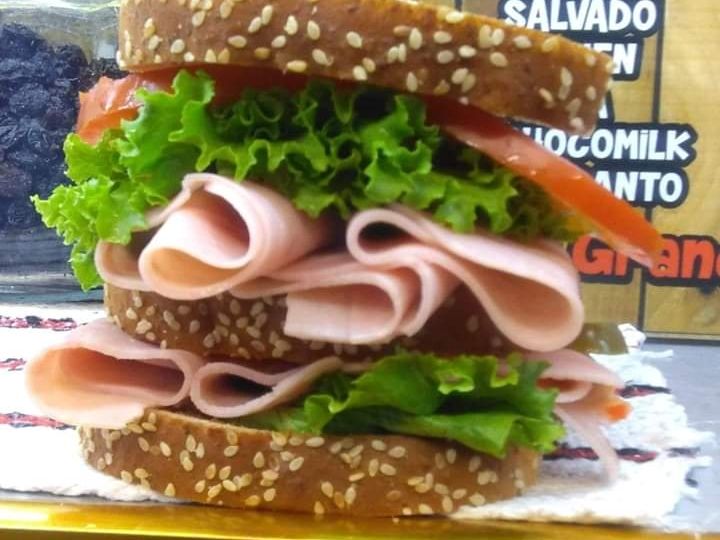 pierna Española jamón piña queso Oaxaca jitomate lechuga frijoles aguacate rajas o chipotle mayonesa