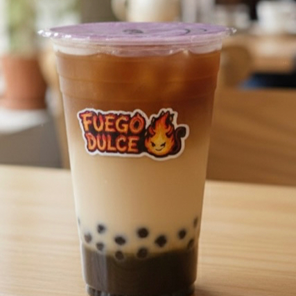 Bubble tea a base de te negro, leche, hielo y tapioca