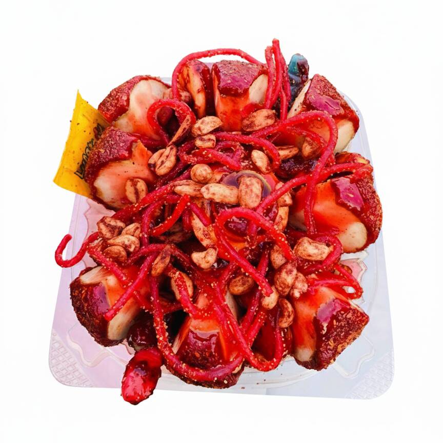 Zanahoria, pepino, jicama, cacahuate, cueritos, gomitas enchiladas