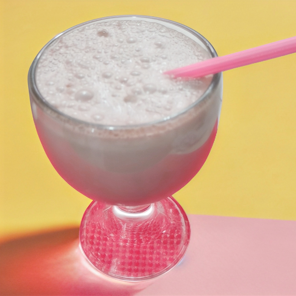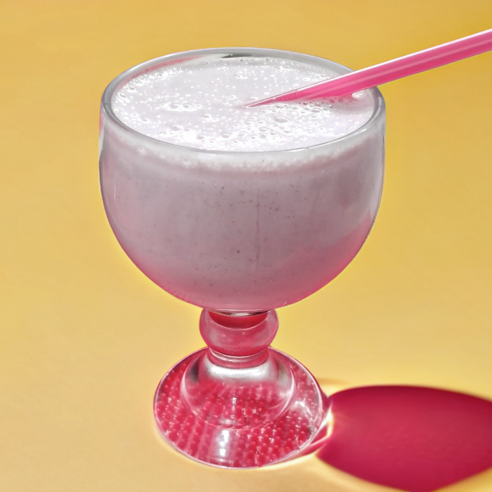 Batido de leche descremada, azucar, hielo y jarabe de fresa.