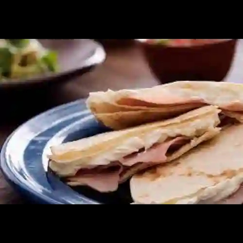 Sincronizada de 2 piezas en tortilla de harina, con aguacate, jitomate, jamón y queso.