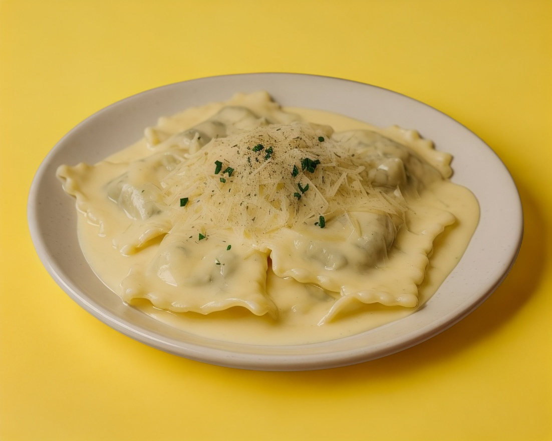 Ravioles rellenos con una exquisita mezcla de cuatro quesos seleccionados, que se funden en cada bocado para ofrecer una experiencia cremosa, intensa y llena de sabor Bañados en salsa de pomodoro. 7 PZ