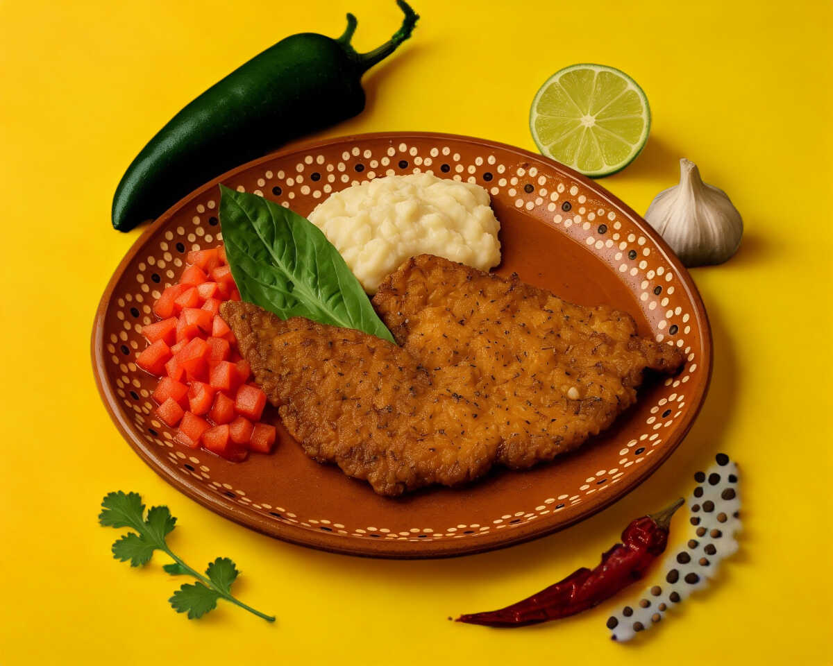 Milanesa de res crujiente, empanizada a la perfeccion, servida con un fresco pico de gallo y un suave y cremoso pure de papa.300g 1pz de bolillo(entero o rebanado y tostado)
