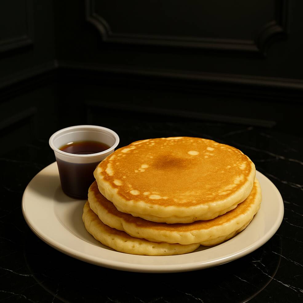 3pz hot cakes , y un complemento a tu elección: miel maple o Lechera.