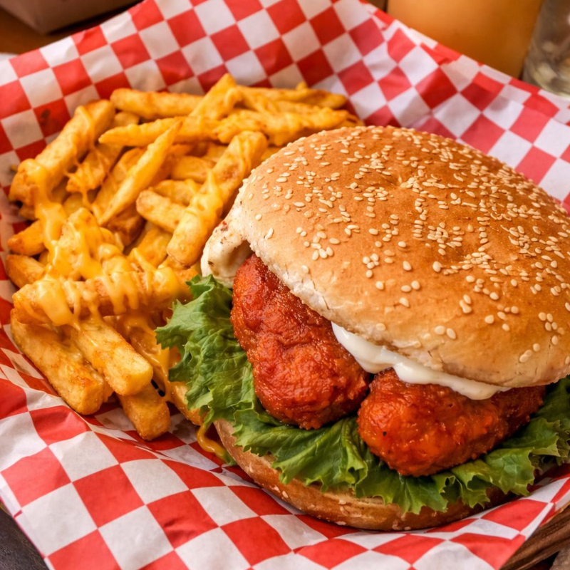 150 gr de tenders con salsa BBQ o Mango Habanero o Buafalo o Naturales, Con 50gr de queso Oaxaca, cebolla y jitomate. Con 100gr de papas a la francesa