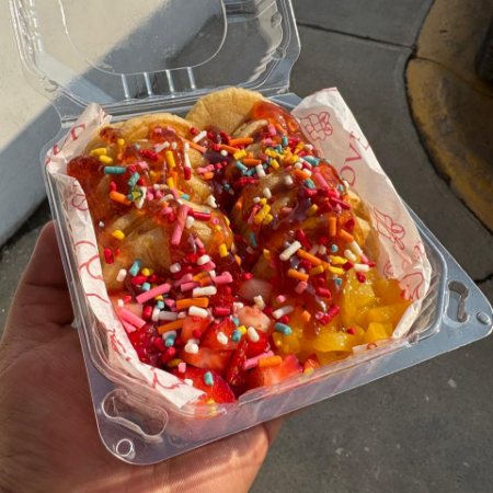 Fruta, Cueritos, Papas, Cacahuates, Churritos, Gomitas, Limón y Salsas.