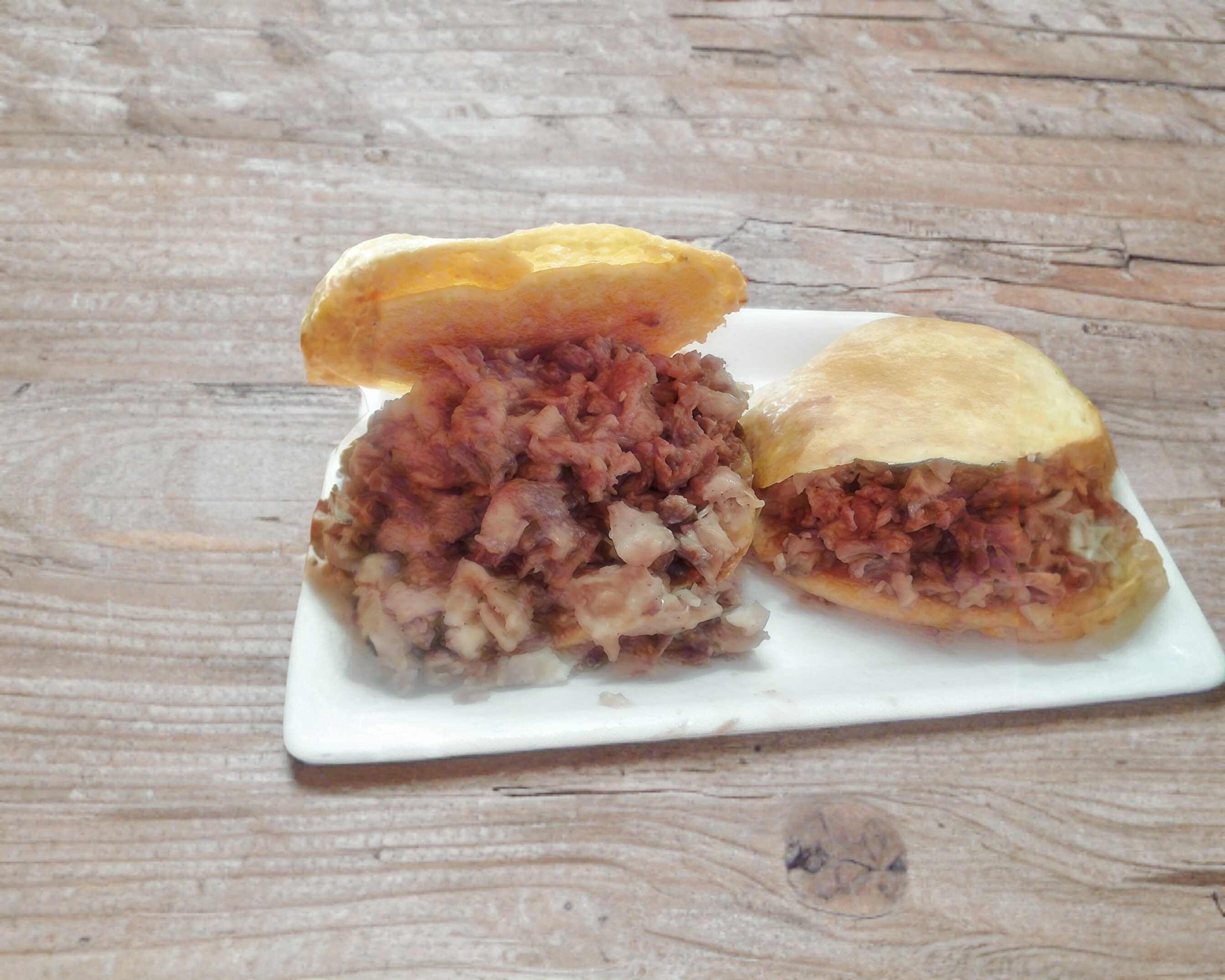 Rellena de chicharrón, con una salsa especial