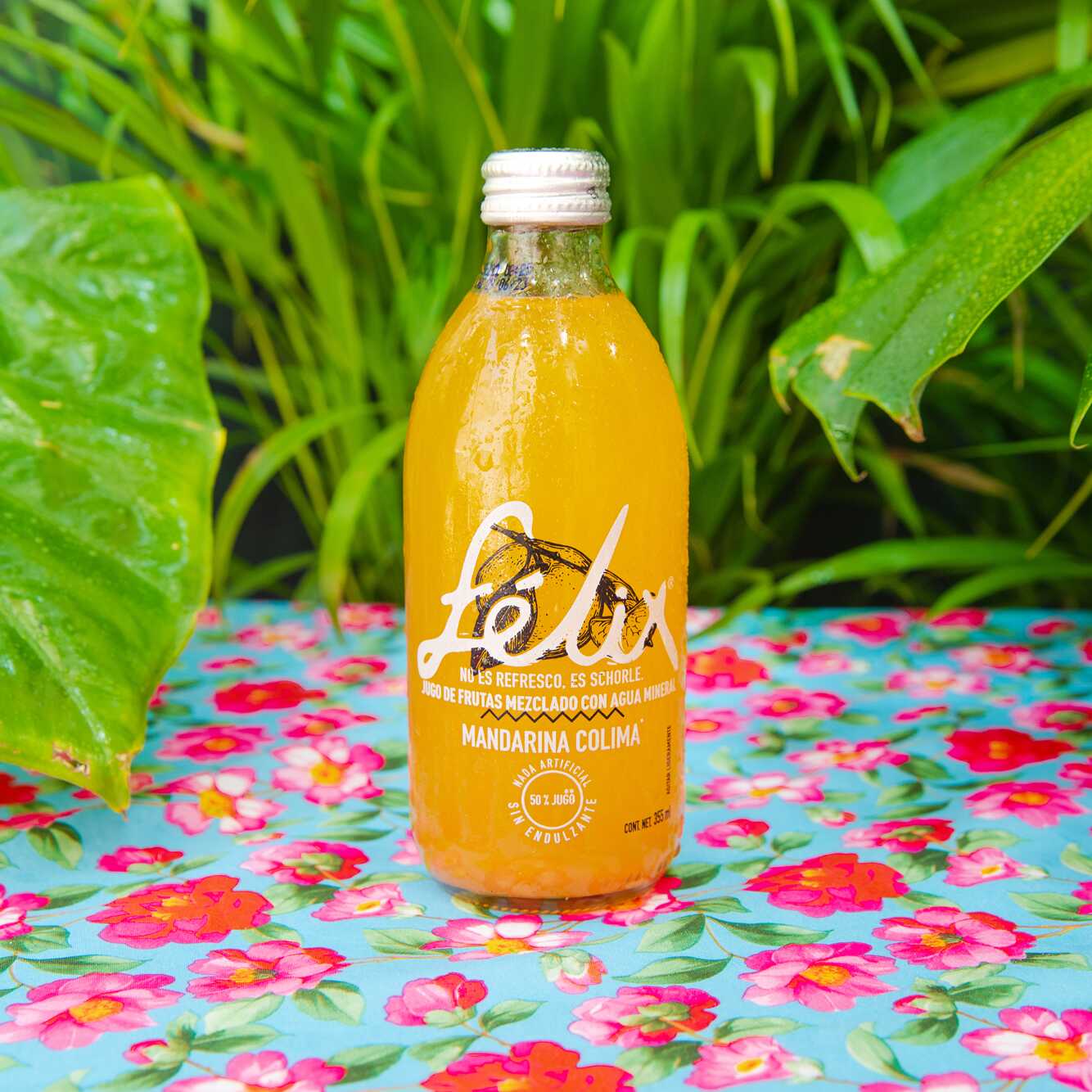 355 ml. Mitad jugo de fruta mitad agua mineral.