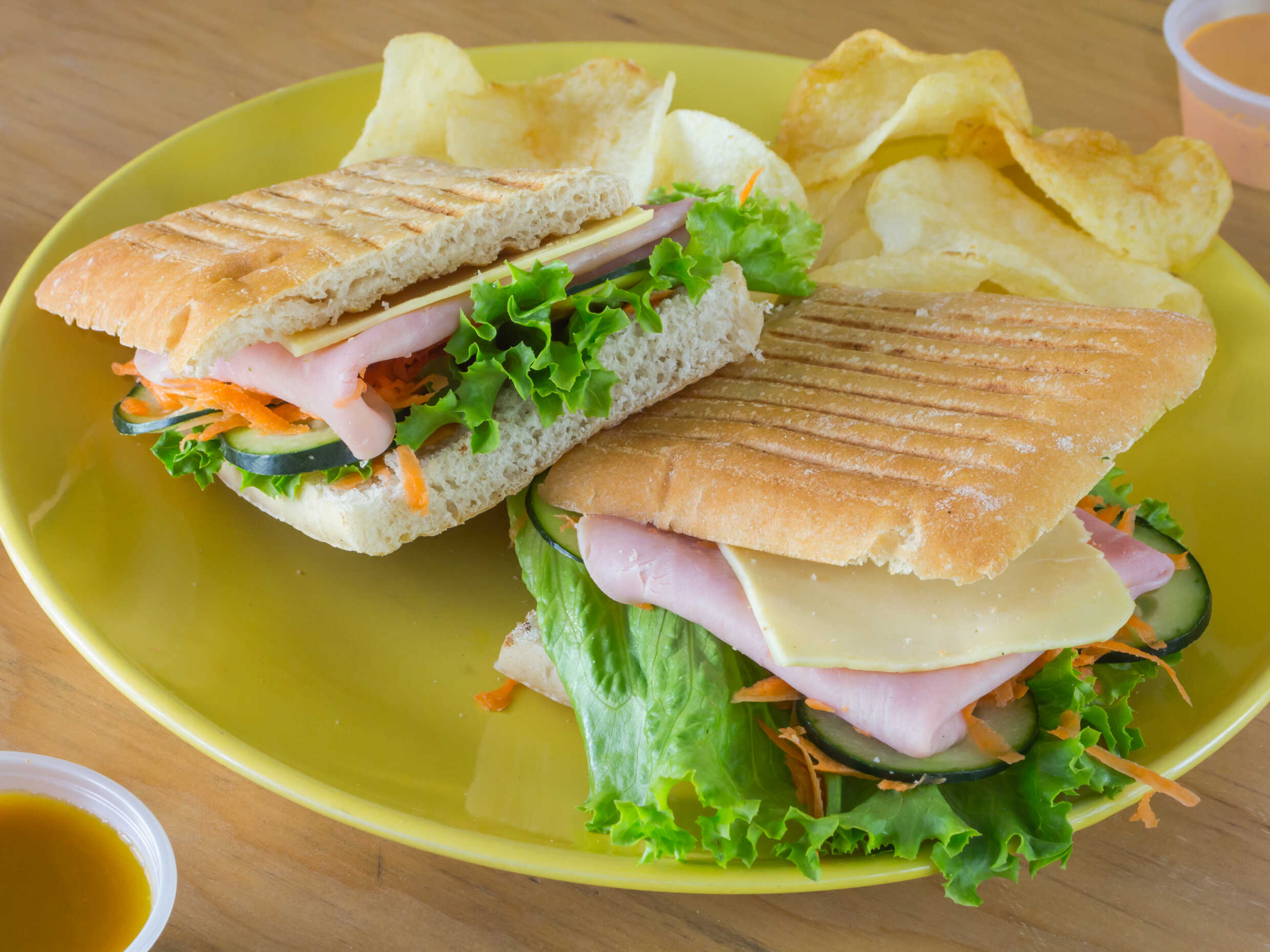 Pan rustico de nuestra panaderia,jamón, queso manchego, lechuga, pepino, zanahoria.