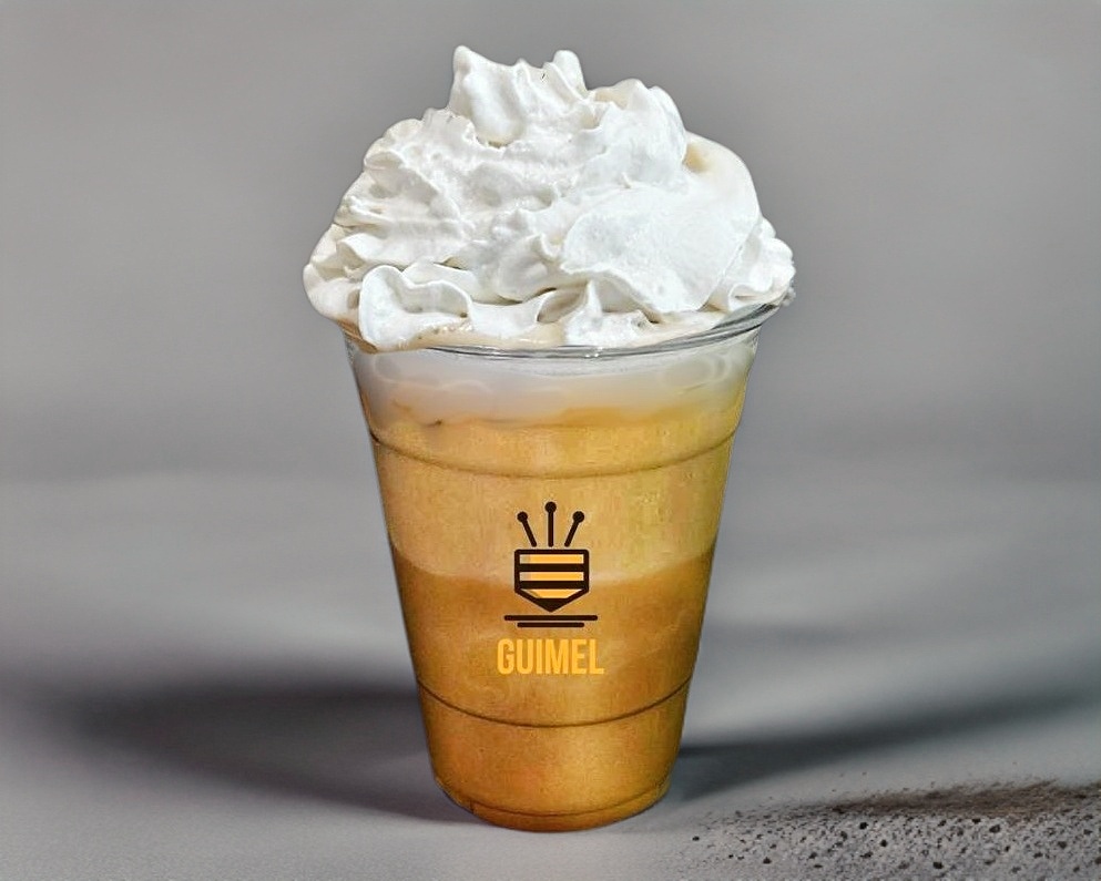 Base de leche cremosa con un shot de café espresso y delcioso jarabe de caramelo