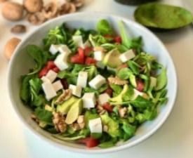 Rica, saludable y fresca ensalada con Lechuga, jitomate, pepino, aguacate y queso panela. Puedes Agregar la proteína de tu elección.
