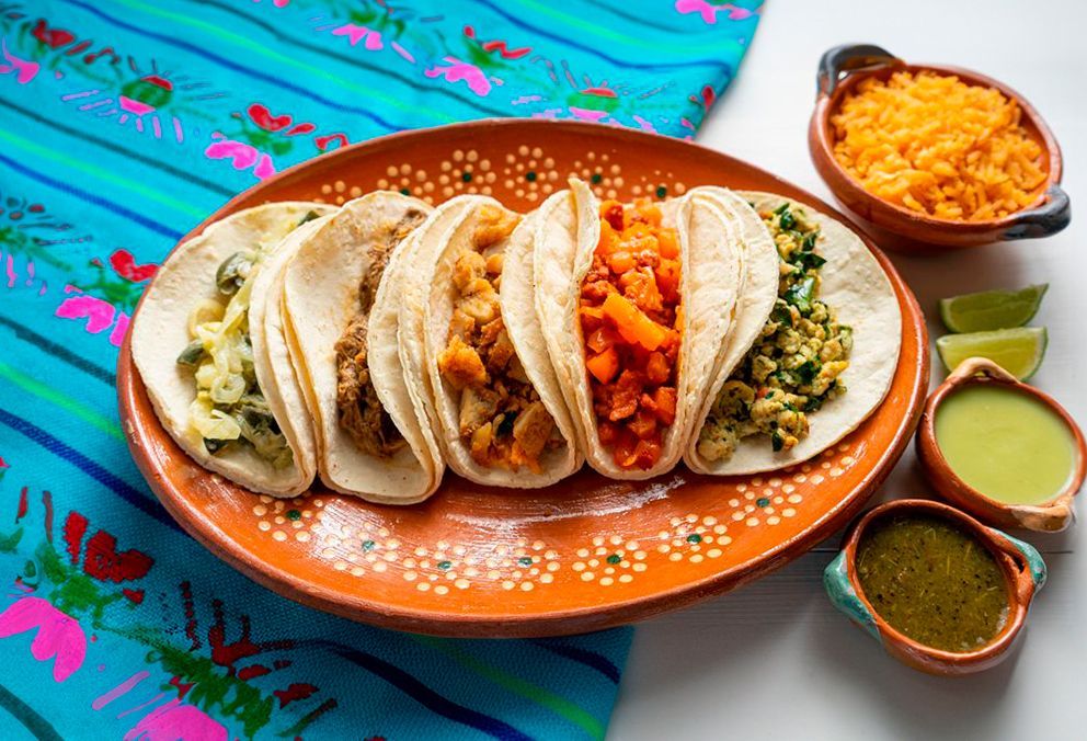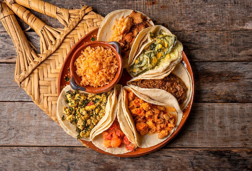 25 deliciosos tacos con tortilla de maíz número 11, arroz y guisado a elegir.