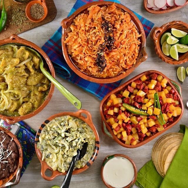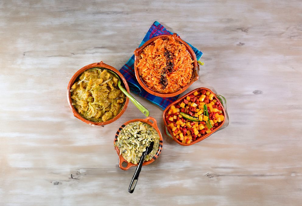 Charola con 2 guisados a elegir acompañadas de arroz y tortillitas del #11
