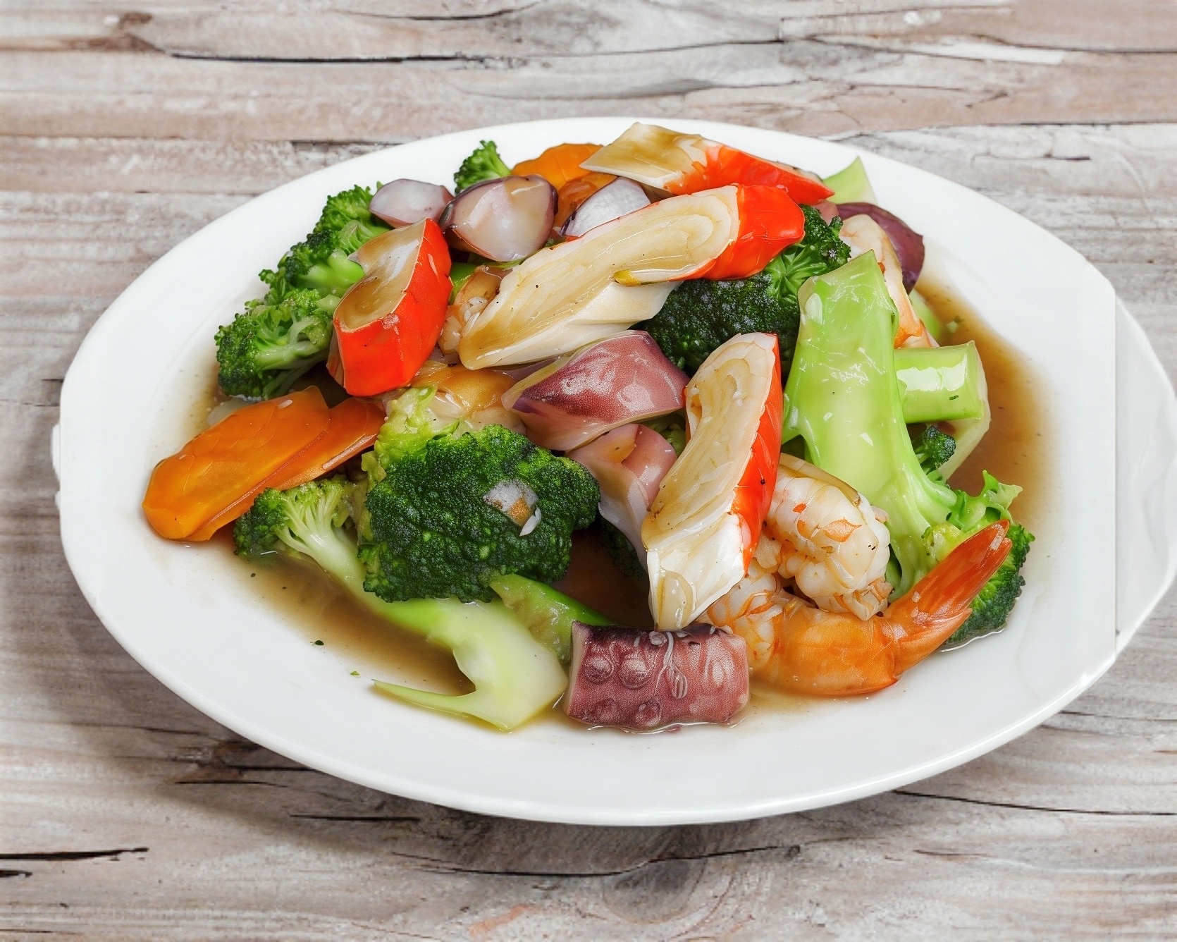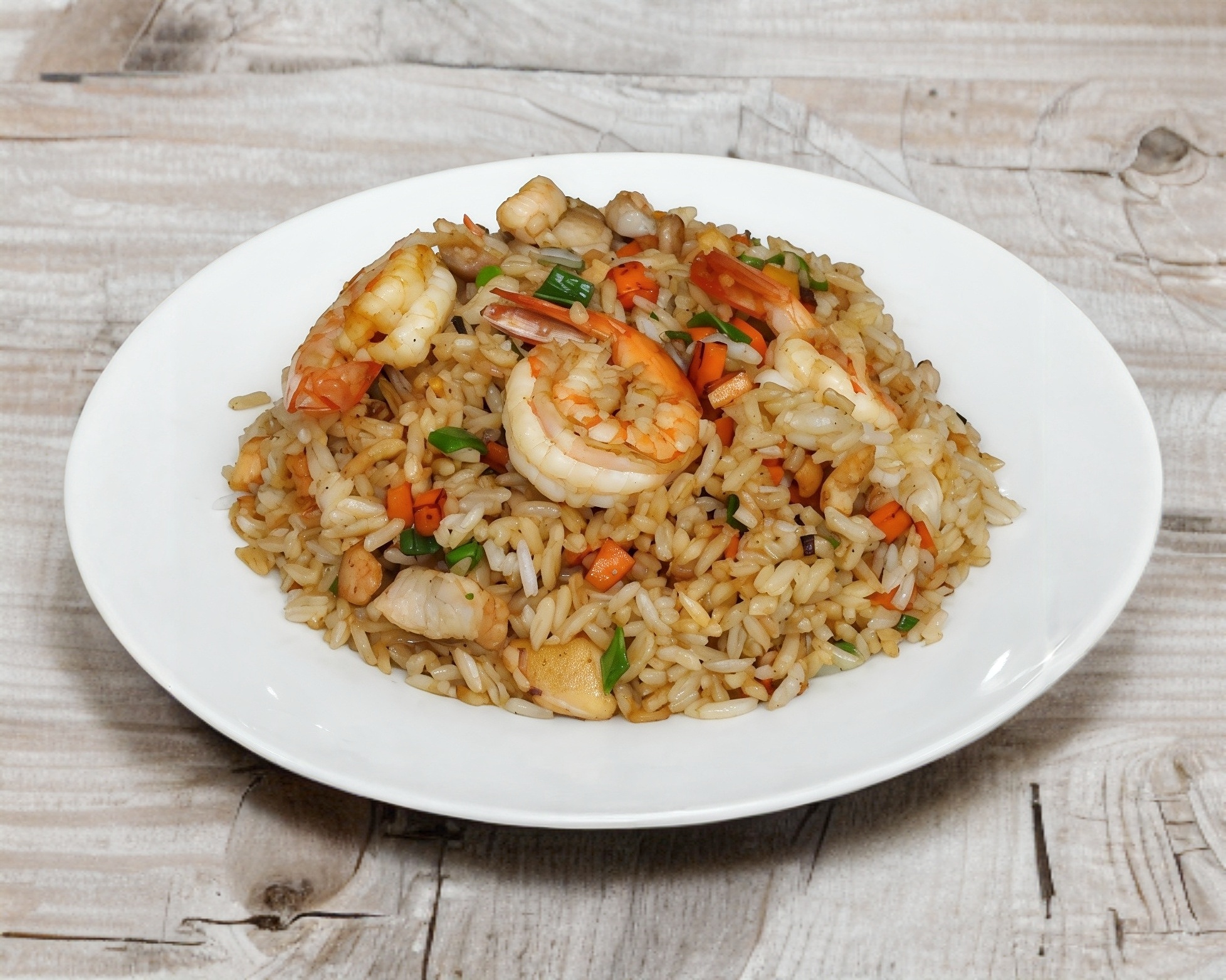 Arroz frito con pollo, huevo, camarón, bistec y verduras. ¡Sabor Oriental en cada porción!