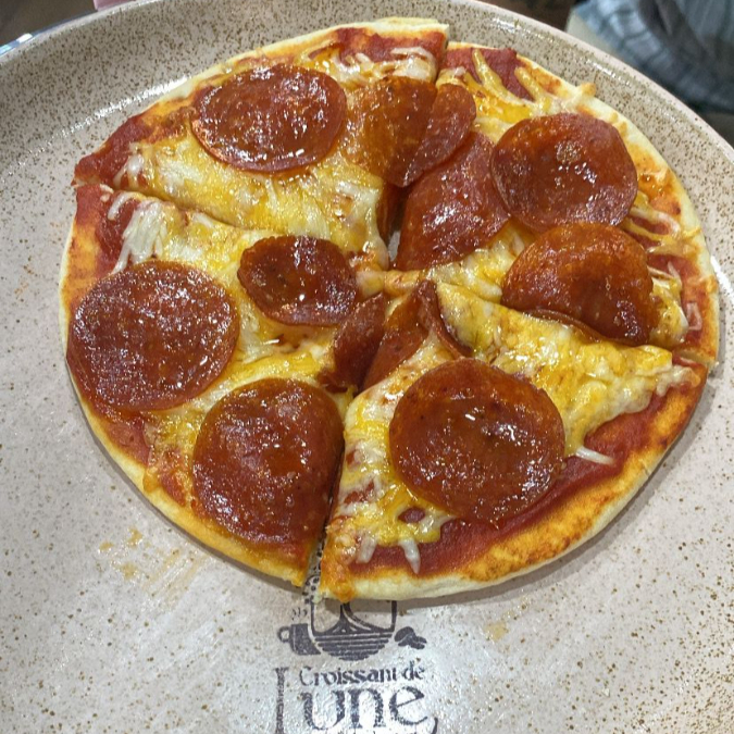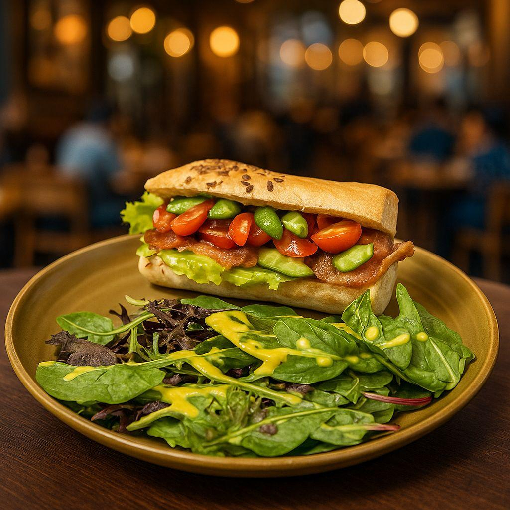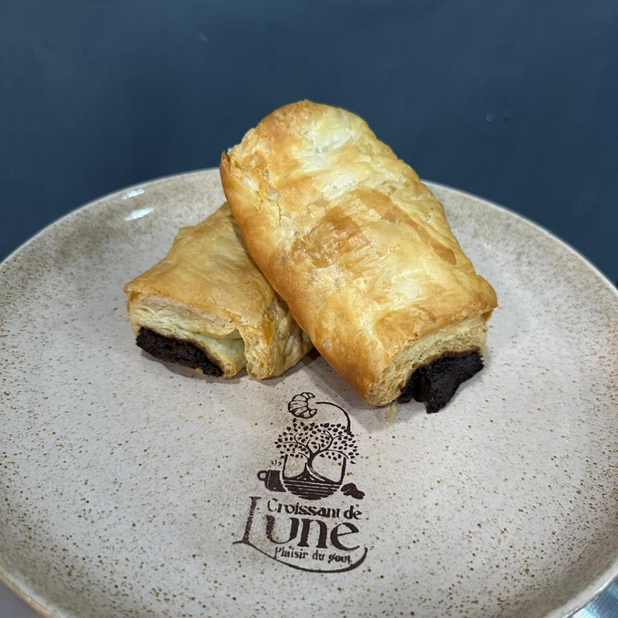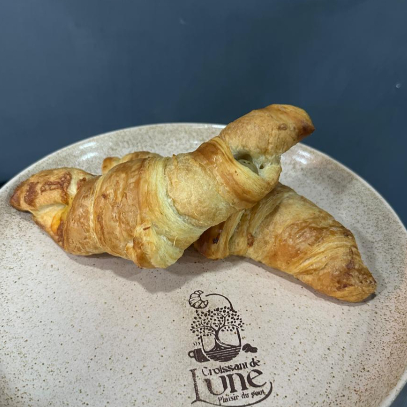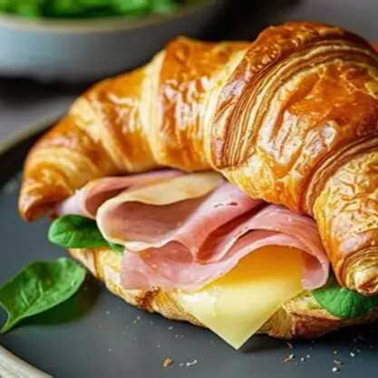 Croissant relleno de jamón y queso, lechuga y mayonesa, acompañado de papas
