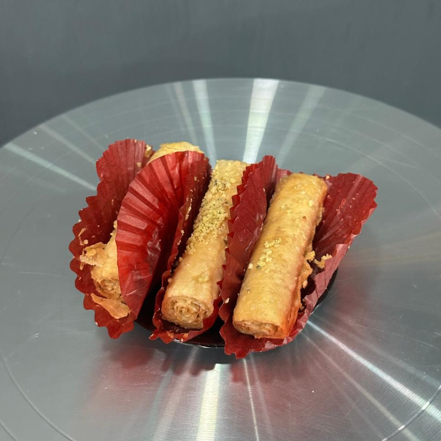 Masa filo rellena de nuez de la india y cubiertas de pistache