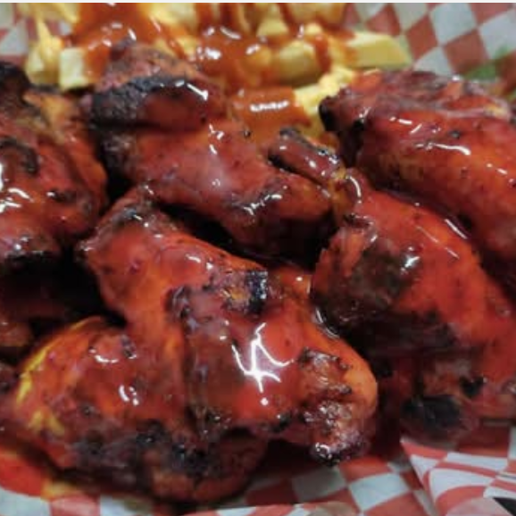 12 piezas de alitas acompañadas de papas a la francesa con queso salsa y catsup. Las alitas pueden ser bañadas con alguna de nuestras salsas: BBQ, tamarindo, flamin hot, picafresa, Takis Fuego, piña habanero, búfalo y mango habanero