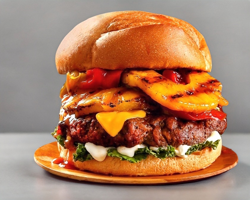 Carne queso amarillo manchego piña lechuga cebolla jitomate mayonesa mostaza catsup