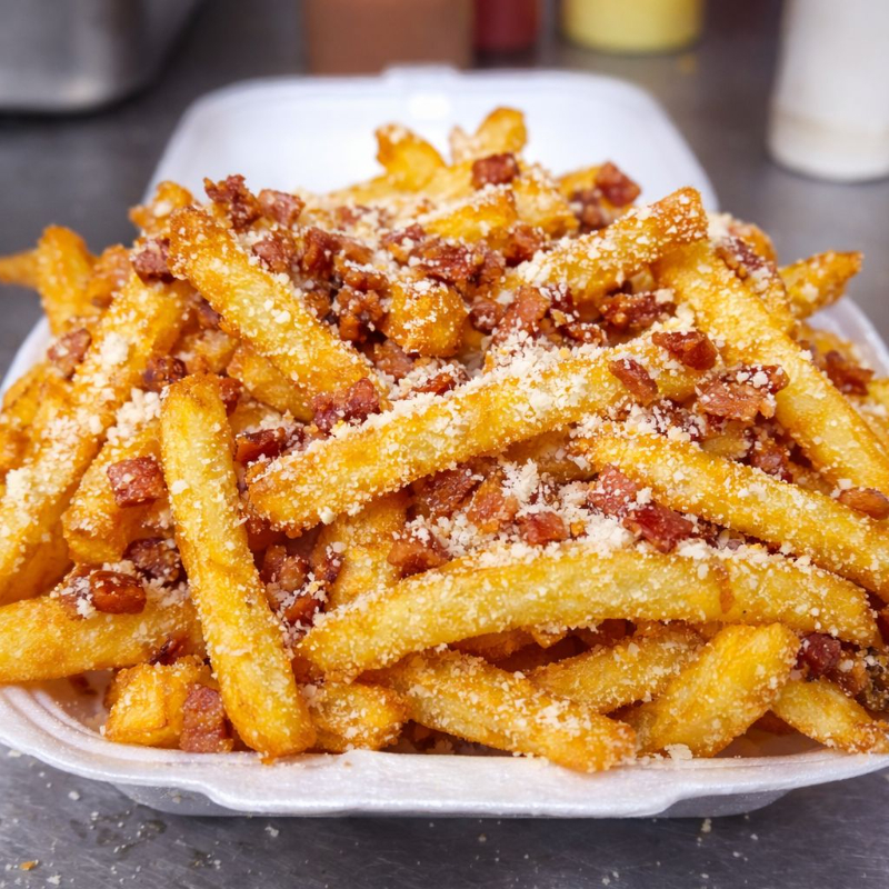 Papas con parmesano y con tocino