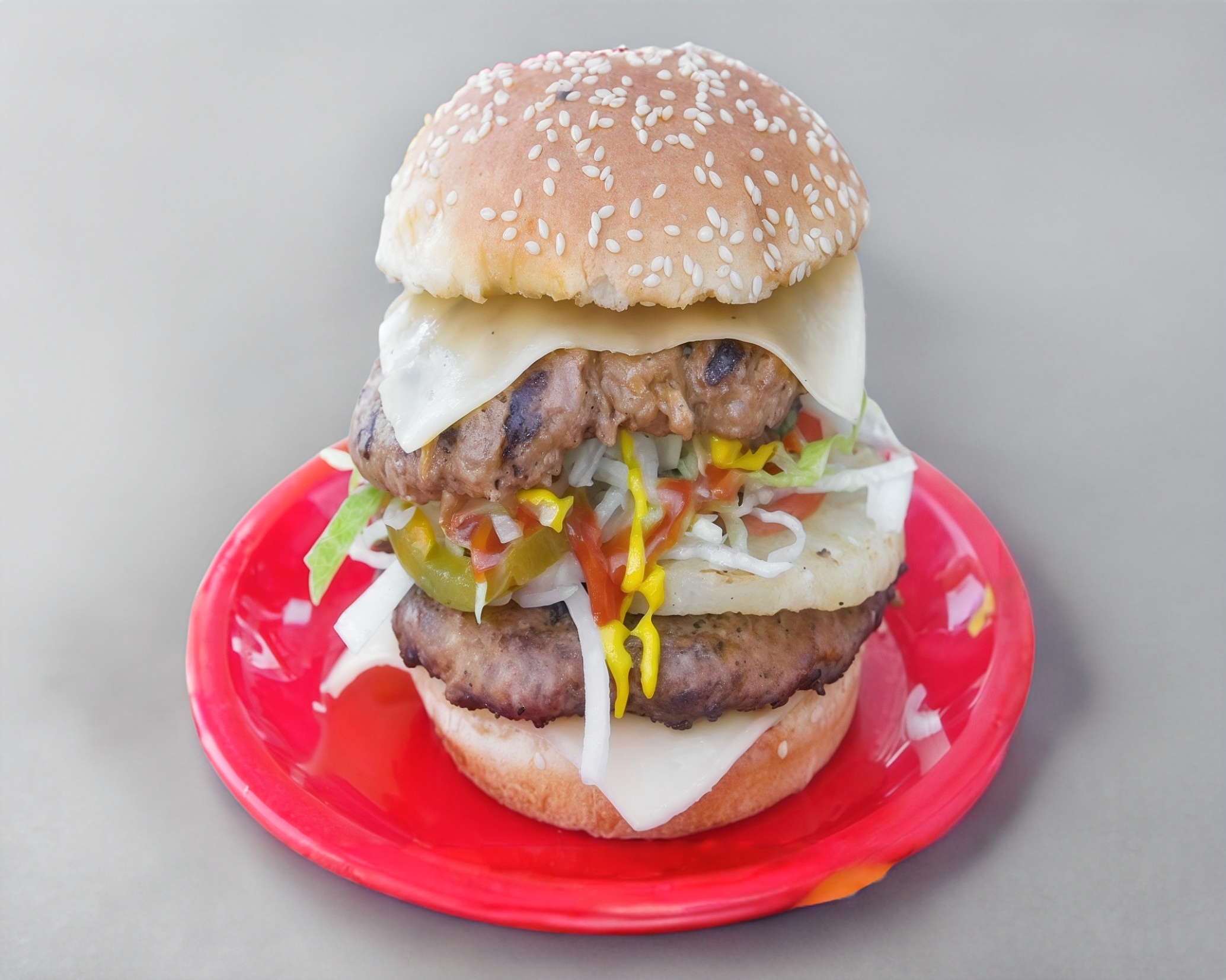 Hamburguesa doble queso y piña