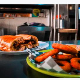 Hamburguesa con queso, papas a la francesa o aros de cebolla y bebida de su preferencia.