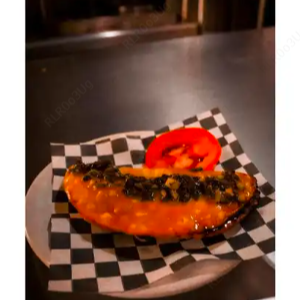 lenteja cebolla caramelizada jitomate pepinillos lechuga catsup mostaza salsa bufalo mayonesas