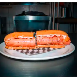 Baguette, salchicha alemana, cebolla caramelizada, mayonesa, mostaza, lechuga, jitomate, salsa búfalo y cátsup.