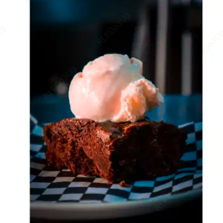 Brownie con helado (puede ser de vainilla, chocolate o fresa).