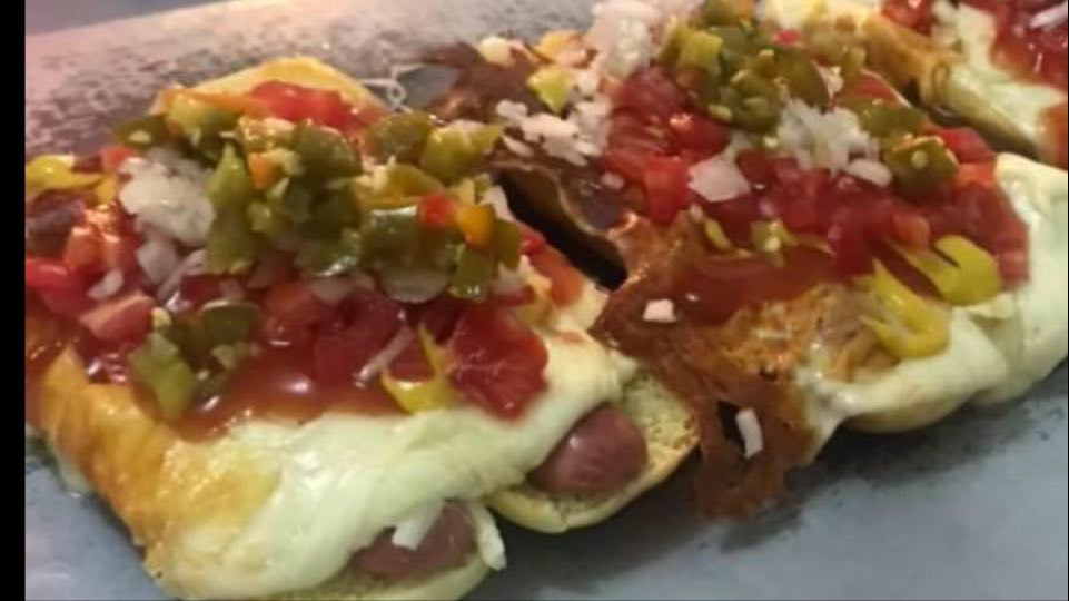 Dos deliciosas salchichas 100% de pavo, dos rebanas de queso amarillo estilo americano, tocino, en un pan de 15 centímetros y 200 gramos de queso Oaxaca