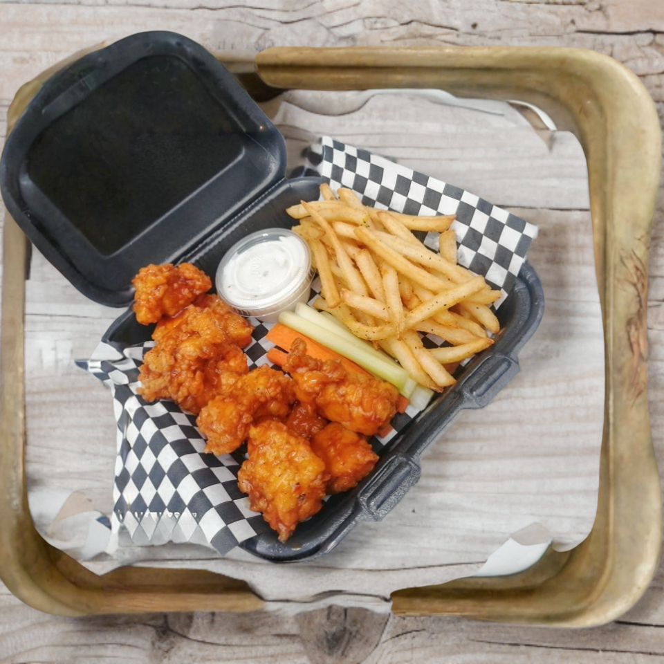 Pueden ser a la BBQ o búfalo, acompañados con papas a la francesa.