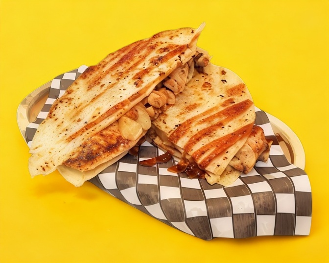 Tortilla de harina, pastor estilo brothers y sazonada, quesillo y bañada en salsa BBQ
