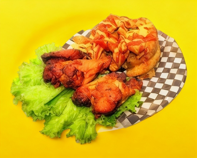 3 Piezas de pollo adobado en cama de lechuga y queso fundido incluye salsa agridulce