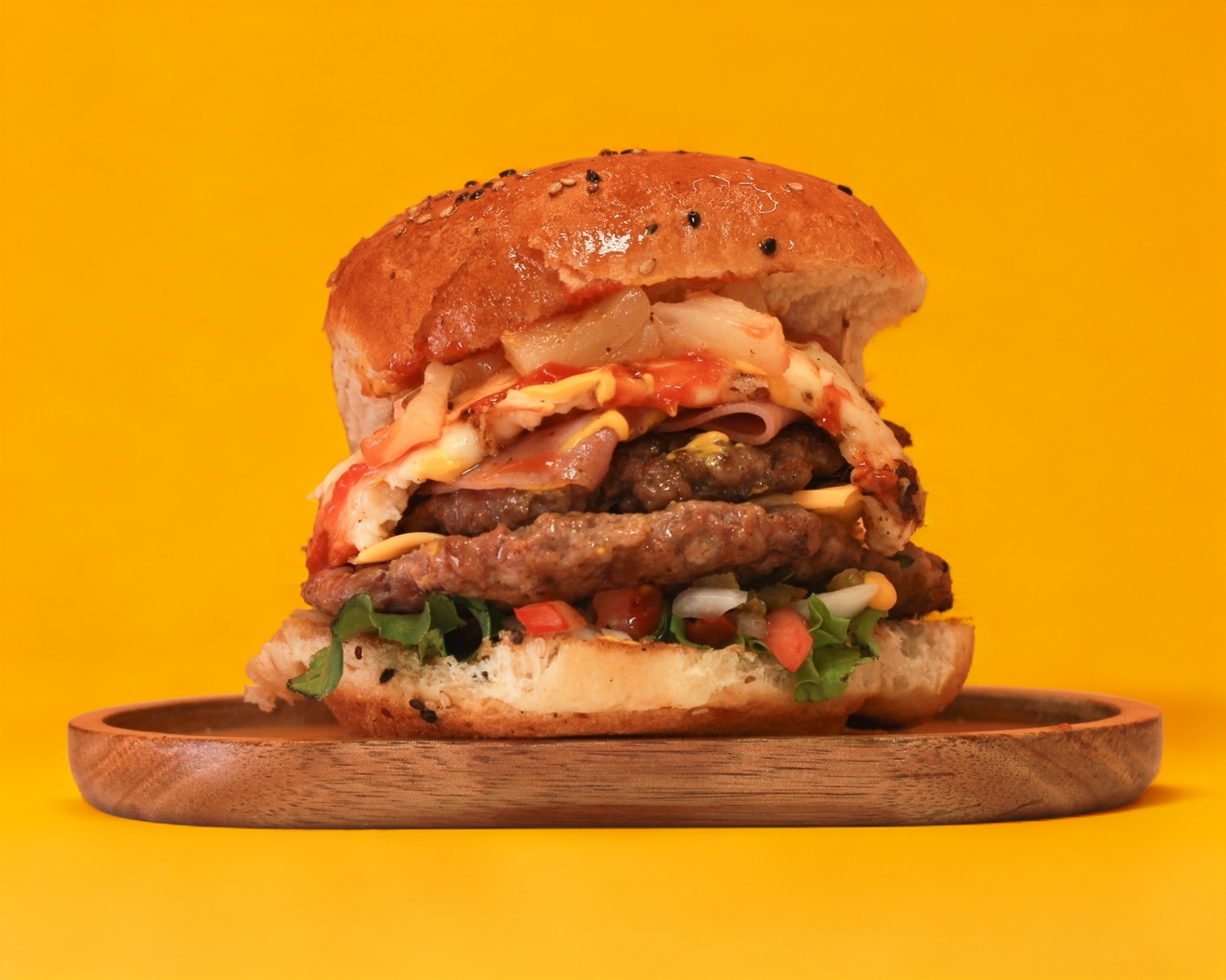 Jugosa carne 100% natural, preparada con nuestra receta secreta de la casa. Acompañada con queso americano derretido, pan suave y los ingredientes clásicos que hacen de esta hamburguesa una experiencia única. ¡Sabor casero que conquista desde el primer bocado!