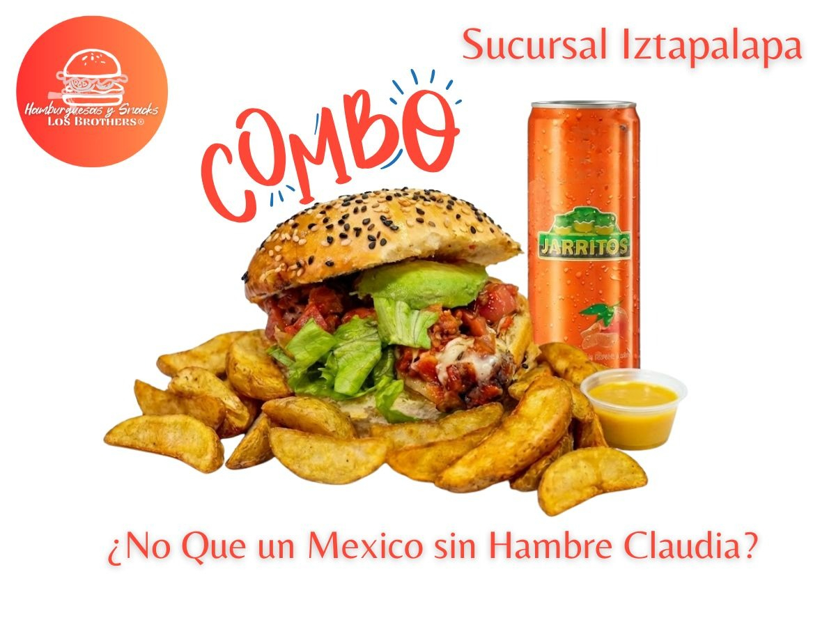 Hamburguesa del Bienestar*1 + Papas Gajo*1 + Refrescos de Lata 355 ml*1