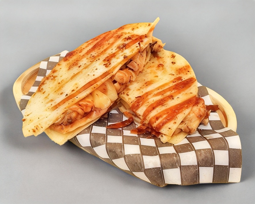 Tortilla de harina, pastor estilo brothers y sazonada, quesillo y bañada en salsa BBQ
