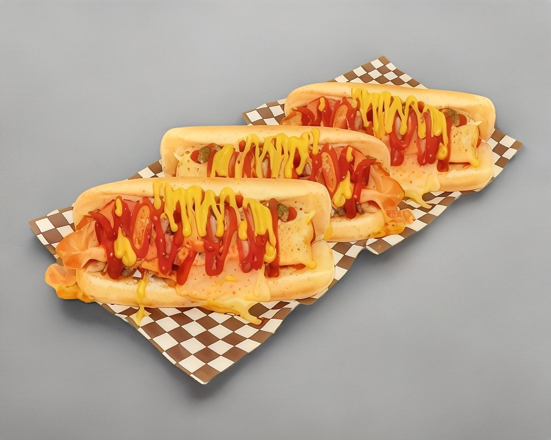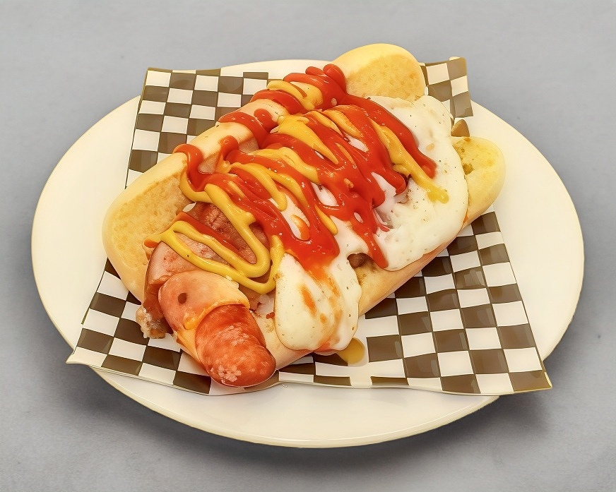Pan de Hotdog, Salchicha Caliente, Tocino y Queso Fundido