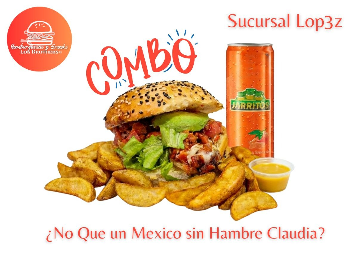 Hamburguesa del Bienestar !!*1 + Papas Gajo*1 + Refrescos de Lata*1