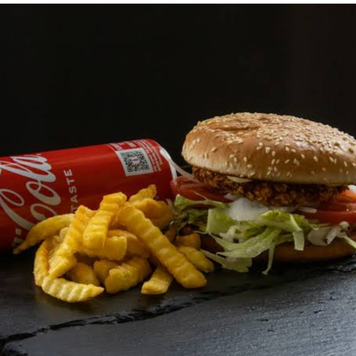 Hamburguesa de la casa, porción de papas y refresco de 355 ml