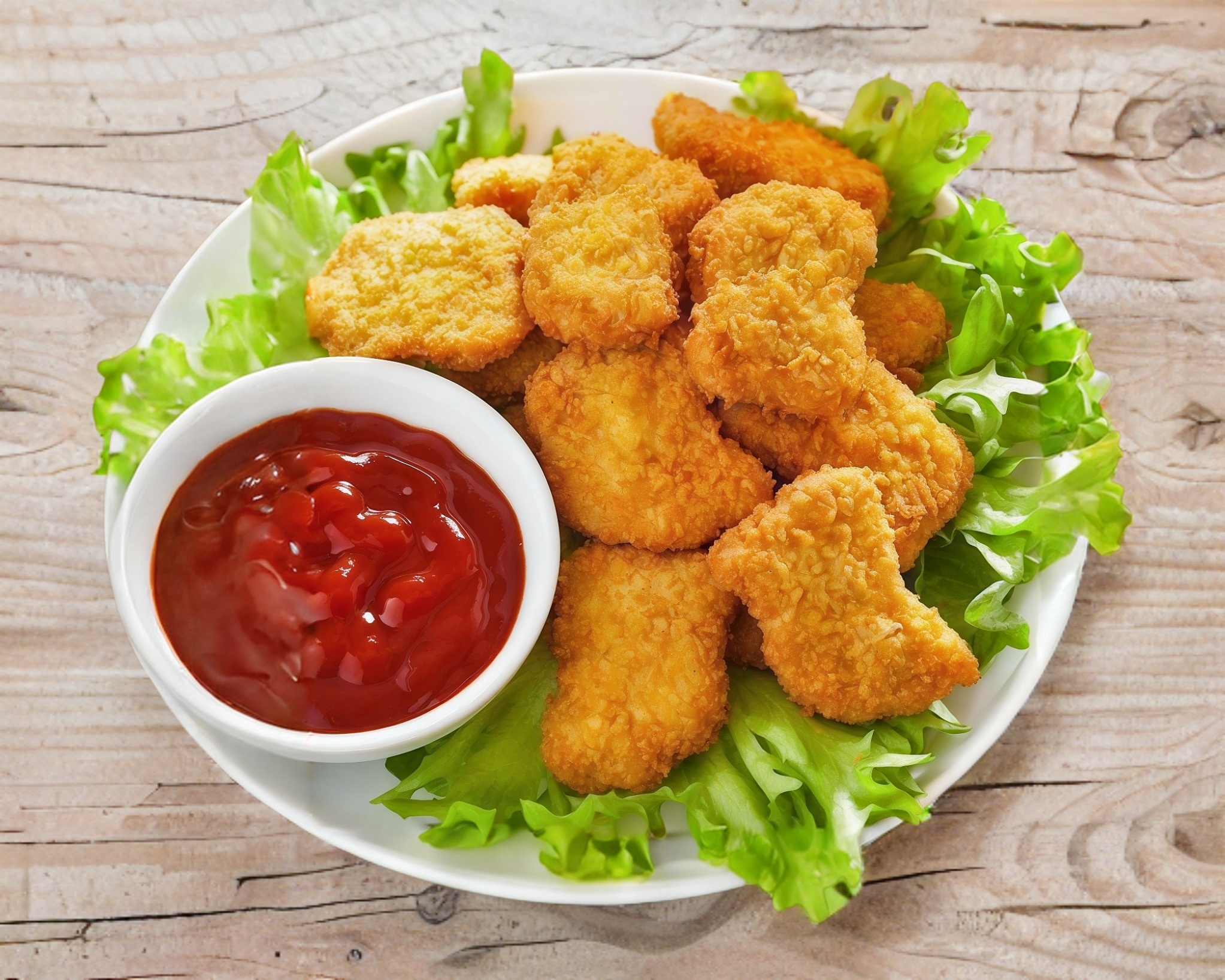Nuggets con queso líquido, catsup y salsa