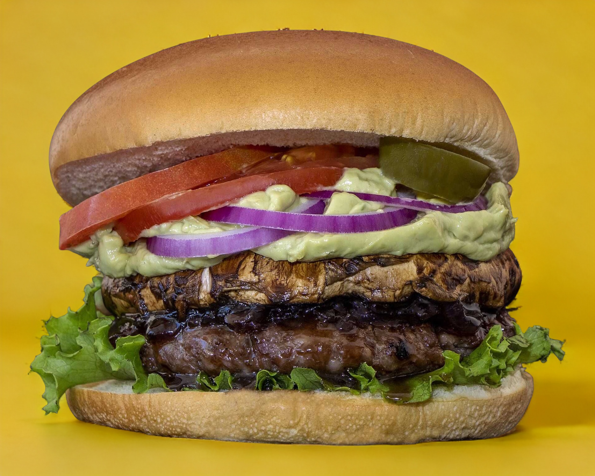 250 gr de carne de res, lechuga, jitomate, cebolla morada, piña, mayonesa, papas a la francesa o gajo