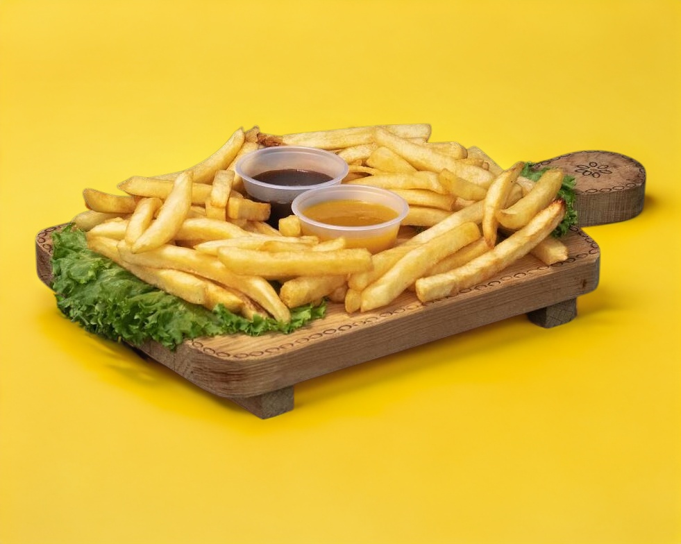 175gr de papas francesa corte grueso, queso amarillo y cátsup aparte