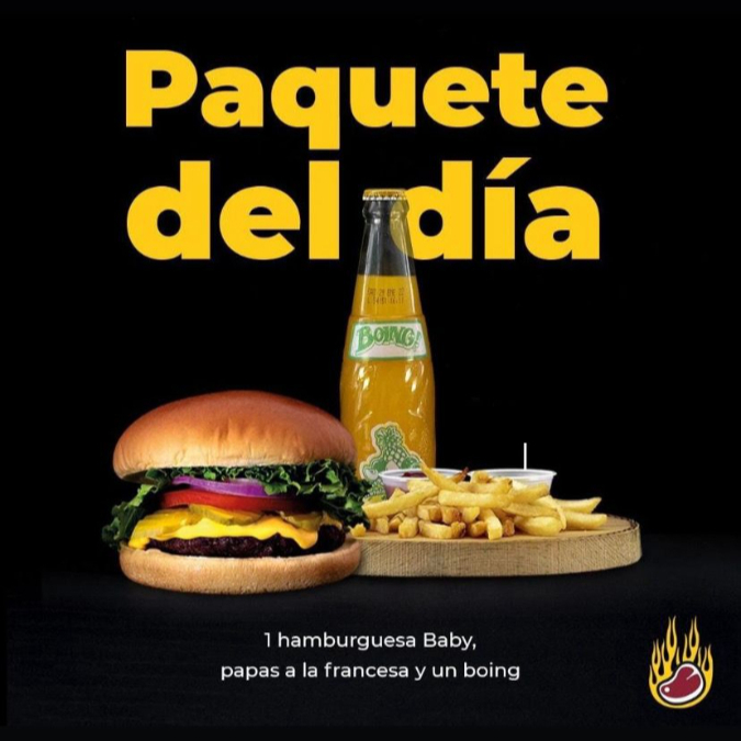 1 hamburguesa Baby, papas a la francesa y un boing .