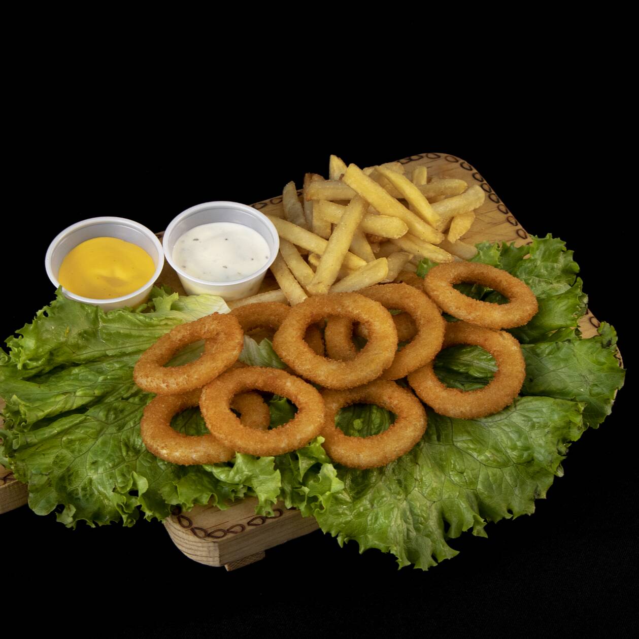 10 Piezas de aros decebolla, aderezo de la casa, aderezo ranch, papas a la francesa o gajo